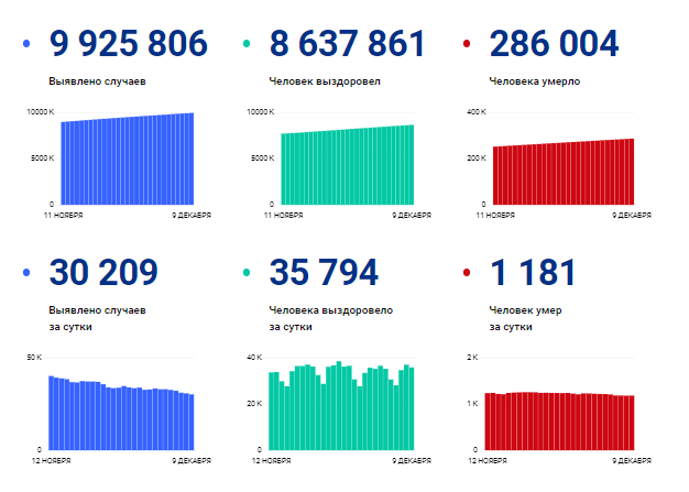 Данные заболеваемости по России (на 9 декабря):